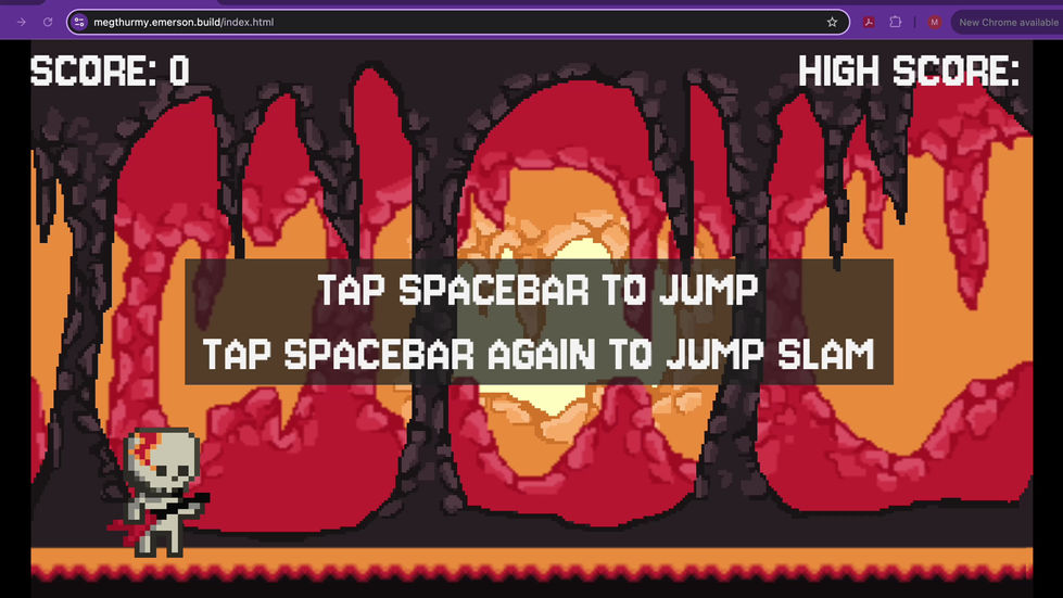 Gameplay is fast-paced and simple, encouraging user engagement and re-playability with just the right amount of difficulty. Contributing to this design is my signature pixel art style, which is cute but brightly saturated. To ensure usability, the interface utilizes bold fonts and high contrast – so you’ll always know your high score. Dodging obstacles such as skeletons, ghosts, and eyeballs will inspire feelings of excitement, anticipation, and maybe even stardom.